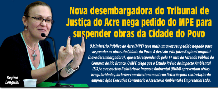 O Ministério Público do Acre (MPE) teve mais uma vez seu pedido negado para suspender as obras da Cidade do Povo. A decisão é da