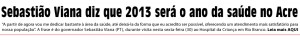 “Vamos fazer de 2013 o ano da saúde no Acre”. A frase é do governador Sebastião Viana (PT), durante visita nesta sexta-feira (30) ao Hospital