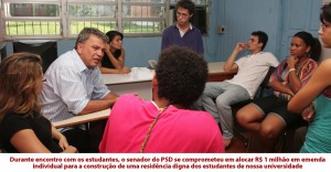 Fabrício Fernandes O senador Sérgio Petecão (PSD) manteve esta sexta-feira (23) uma reunião com os dirigentes do Diretório Central dos Estudantes (DCE) da Ufac. No