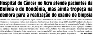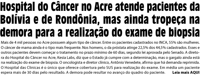 Jairo Carioca – da redação de ac24horas Mais de 4 mil pessoas no Acre possuem algum tipo de câncer. Entre os pacientes cadastrados no Instituto