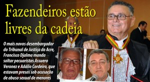 Ray Melo, da redação de ac24horas raymelo@ac24horas.com Os pecuaristas Assuero Veronez e Adálio Cordeiro obtiveram na tarde desta segunda feira, 05, decisão liminar que determina