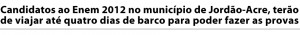 Salomão Matos Da redação de ac24horas salomao.matos@gmail.com Os 57 candidatos inscritos no Exame Nacional do Ensino Médio- ENEM 2012, no município de Jordão, [interior do