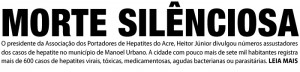 Ray Melo, da redação de ac24horas raymelo@ac24horas.com O presidente da Associação dos Portadores de Hepatites do Acre (Aphac), Heitor Júnior divulgou números assustadores dos casos