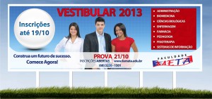Na hora de construir o seu futuro, pense em quem tem compromisso com ensino de qualidade. A FAMETA realiza o seu vestibular 2013 com os