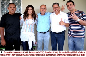 Os candidatos a prefeito de Rio Branco que fazem oposição à atual administração da capital, Fernando Melo (PMDB), Antônia Lúcia (PSC), Leôncio Castro (PMN), Adacildo