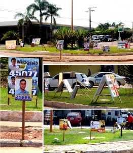 Texto e fotos de Ray Melo, da redação de ac24horas raymelo@ac24horas.com O lixo gerado pela utilização de propagandas eleitorais móveis tomou conta das rotatórias e