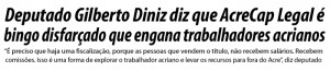 Sobre a acusação feita pelo Deputado Gilberto Diniz na sessão desta quarta-feira (29) da Assembleia Legislativa afirmando que “o AcreCap Legal é bingo disfarçado e