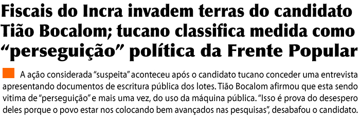 De forma suspeita, técnicos do INCRA chegaram por volta das 15 horas na sede da colonia do candidato Tião Bocalom, no ramal do Bigode, km