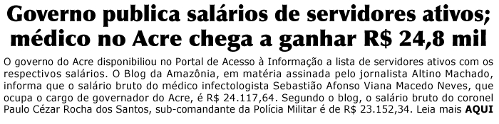 O governo do Acre disponibiliou no Portal de Acesso à Informação a lista de servidores ativos com os respectivos salários. O Blog da Amazônia, em