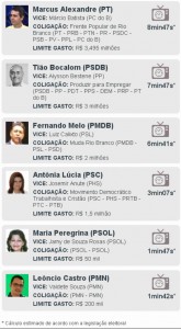 Infográfico disponibilizado pelo UOL mostra o tempo de TV de cada candidato à prefeitura de Rio Branco associado a informações como coligações e outras.