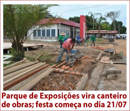 Jane Casconcelos, da assessoria do Depsasa O trabalho é intenso no Parque de Exposições. Por enquanto o que se vê são homens e muitas máquinas