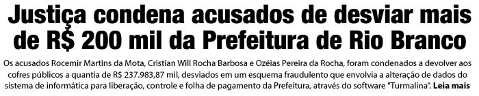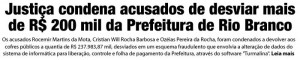 O juiz titular da 1ª Vara da Fazenda Pública da Comarca de Rio Branco, Anastácio Menezes, julgou procedente a Ação Civil Pública por improbidade administrativa