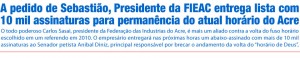 A pedido de Sebastião, Presidente da FIEAC entrega lista com 10 mil assinaturas para permanência do atual horário do Acre