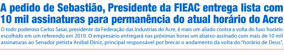 O todo poderoso Carlos Sasai, presidente da Federação das Industrias do Acre, é mais um aliado contra a volta do fuso horário escolhido em um