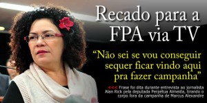 “Não sei se vou conseguir sequer ficar vindo aqui pra fazer campanha”. A frase foi dita durante entrevista ao jornalista Alan Rick pela deputada Perpétua