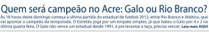 Jairo Barbosa – jbjurua@gmail.com Às 18 horas deste domingo começa a última partida do estadual de futebol 2012, jogo entre Rio Branco e Atlético, que