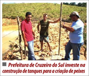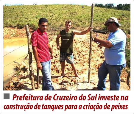 A partir do próximo dia 20, a prefeitura de Cruzeiro do Sul dará início à construção de tanques para criação de peixes. Serão beneficiados produtores