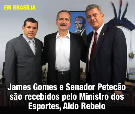 O prefeito de Senador Guiomard, James Gomes, acompanhado do Senador Sérgio Petecão foram recebidos em audiência pelo Ministro do Esporte, Aldo Rebelo, na última semana
