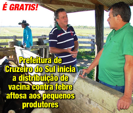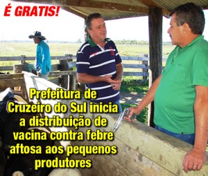 Pelo quarto ano consecutivo a prefeitura de Cruzeiro do Sul faz a distribuição gratuita de doses de vacinas contra a febre aftosa para pequenos produtores