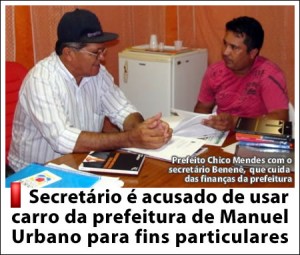 O ex-vereador Antônio Raimundo da Cruz Alves, conhecido em Manuel Urbano como Professor Benenê, está sendo acusado de usar um carro que teria sido alugado