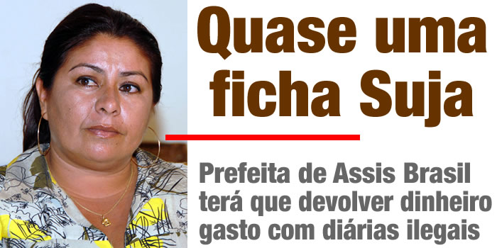 A prefeita de Assis Brasil, Maria Eliane Gadelha Cariús [PT], teve as contas do exercício de 2009 reprovadas por ter apresentado ao Tribunal de Contas