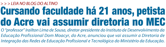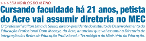 O “professor” Irailton Lima de Sousa, diretor-presidente do Instituto de Desenvolvimento da Educação Profissional Dom Moacyr, do Acre, anunciou que vai assumir a Diretoria de