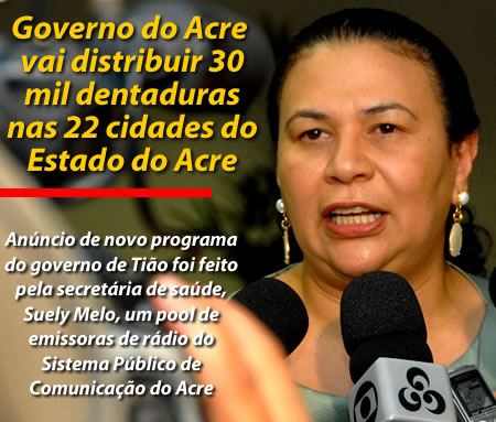 Jairo Carioca, da redação de ac24horas jscarioca@globo.com O governo do Acre vai distribuir 30 mil dentaduras nos 22 municípios do Estado. O anuncio foi feito