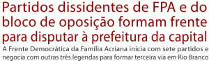 As eleições municipais deste ano prometem ser uma das mais disputadas dos últimos pleitos na capital acriana. Partidos dissidentes da Frente Popular [coligação que mantém