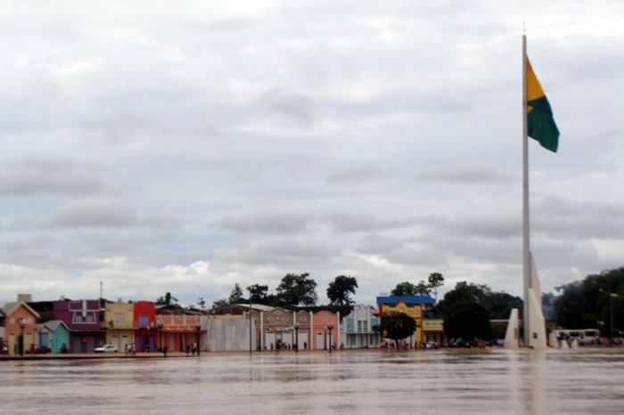 Água chega à Praça Hugo Poli e prefeita Leila Galvão cancela o carnaval de Brasiléia