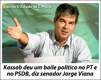 Vera Rosa, de O Estado de S.Paulo BRASÍLIA – Amigo do ex-presidente Lula, o senador Jorge Viana (PT-AC) diz que o prefeito Gilberto Kassab (PSD)