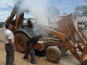 Jairo Barbosa – jbjurua@gmail.com O rompimento da mangueira de combustível de uma retroescavadeira provocou um incêndio no maquinário por volta das 11:45 minutos da manha