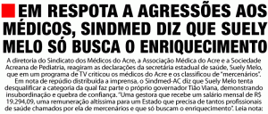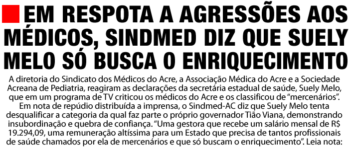 NOTA DE REPÚDIO A diretoria do Sindicato dos Médicos do Acre (Sindmed-AC), a Associação Médica do Acre e a Sociedade Acreana de Pediatria vêm a