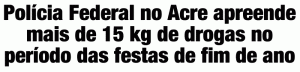 Neste período de festas a Polícia Federal no Estado do Acre segue realizando operações que visam reprimir o tráfico de entorpecentes apreendendo cerca de 15,37