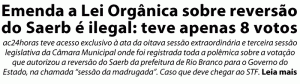 Emenda a Lei Orgânica sobre reversão do Saerb teve apenas oito votos