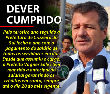 Pelo terceiro ano consecutivo a Prefeitura de Cruzeiro do Sul fecha o ano com o pagamento do salário de todos os servidores em dia. Desde