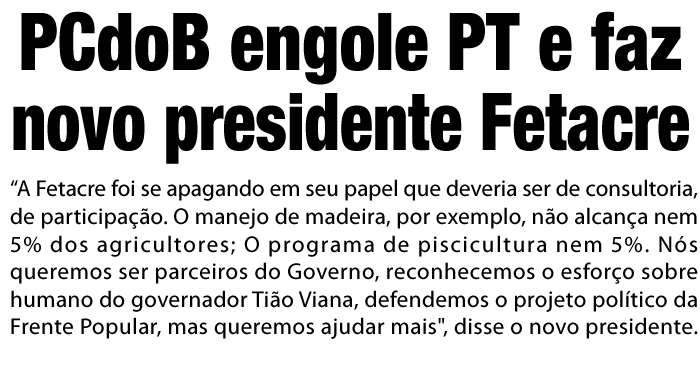 Sem a presença do prefeito Nilson Areal (PR), o governador Tião Viana (PT), fez um discurso duro [na última sexta-feira, 09], em Sena Madureira, durante