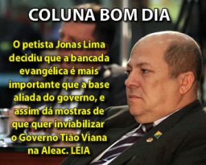 Deu na coluna Bom Dia do Jornal A Tribuna: O petista Jonas Lima decidiu que a bancada evangélica é mais importante que a base aliada