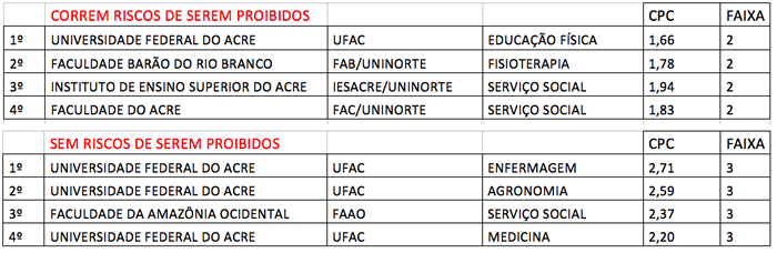 O Ministério da Educação e Cultura (MEC) poderá proibir acesso às vagas do cursos de Educação Física da Universidade Federal do Acre (Ufac), Fisioterapia e