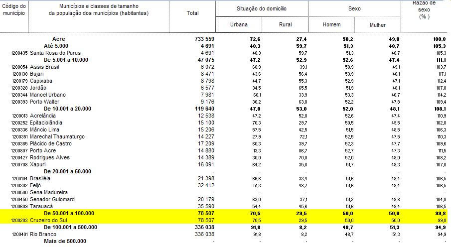 Um número curioso sobre a população do município de Cruzeiro do Sul foi divulgado nesta quarta-feira (16) pelo Censo Demográfico 2010 do Instituto de Geografia