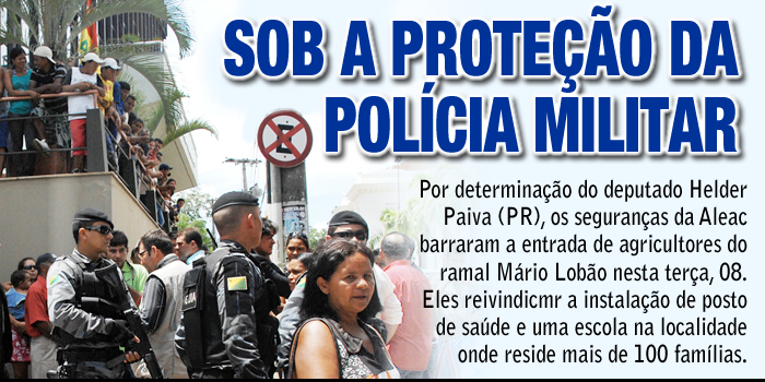 Por determinação do presidente da Mesa Diretora, deputado Helder Paiva (PR), os seguranças da Assembléia Legislativa barraram a entrada de agricultores do ramal Mário Lobão,
