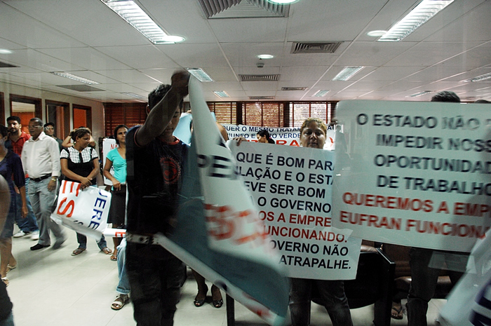 Dezenas de funcionários da empresa da Eufran Indústria e Comércio de Lâminas Ltda, que está impedida de funcionar pela cassação de sua inscrição estadual, ocuparam