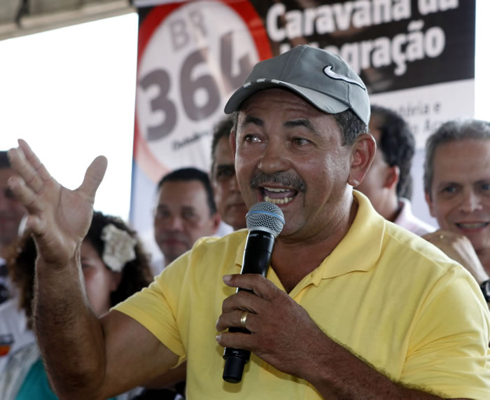 O prefeito de Bujari, José Teles Padeiro (ex-PMDB) até se esforçou para aparecer ao lados de seus novos “aliados” da Frente Popular, durante a realização
