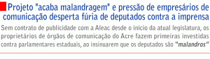 A unanimidade finalmente aconteceu na Aleac. Depois de a divulgação das primeiras matérias do projeto demagógico “acaba malandragem”, de Walter Prado (PDT), nos jornais diários