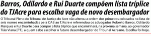 O Tribunal Pleno do Tribunal de Justiça do Acre substituiu apenas o nome do advogado Maurício Honeberger na ordem dos primeiros colocados na lista de