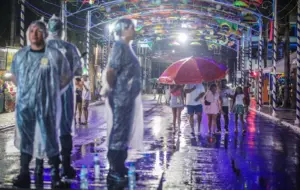 A chuva que atinge Rio Branco na noite deste sábado (14) provocou atraso temporário do início da programação do Carnaval Rio Branco Folia 2026, na