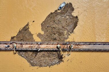 Participação de Whidy Melo Engenheiros e técnicos do DERACRE que atuam na retirada de balseiros sob a ponte Juscelino Kubitschek, no centro de Rio Branco,