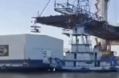 Um rebocador colidiu, na manhã deste domingo (17), com a estrutura da nova ponte do distrito de Outeiro, em Belém, que integra o conjunto de