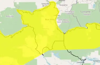 O Instituto Nacional de Meteorologia (Inmet) emitiu um novo alerta de chuvas intensas para os estados de Roraima, Acre e para várias cidades do Amazonas,