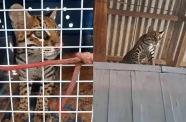Uma jaguatirica criada ilegalmente como animal de estimação foi resgatada pelo Ibama em Uruará, no sudoeste do Pará. O animal, chamado Pituca, era usado pela