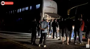 Durante a caravana rumo à final da Libertadores, um dos quatro ônibus que levava torcedores acreanos para Lima quebrou por problema no ar do freio.